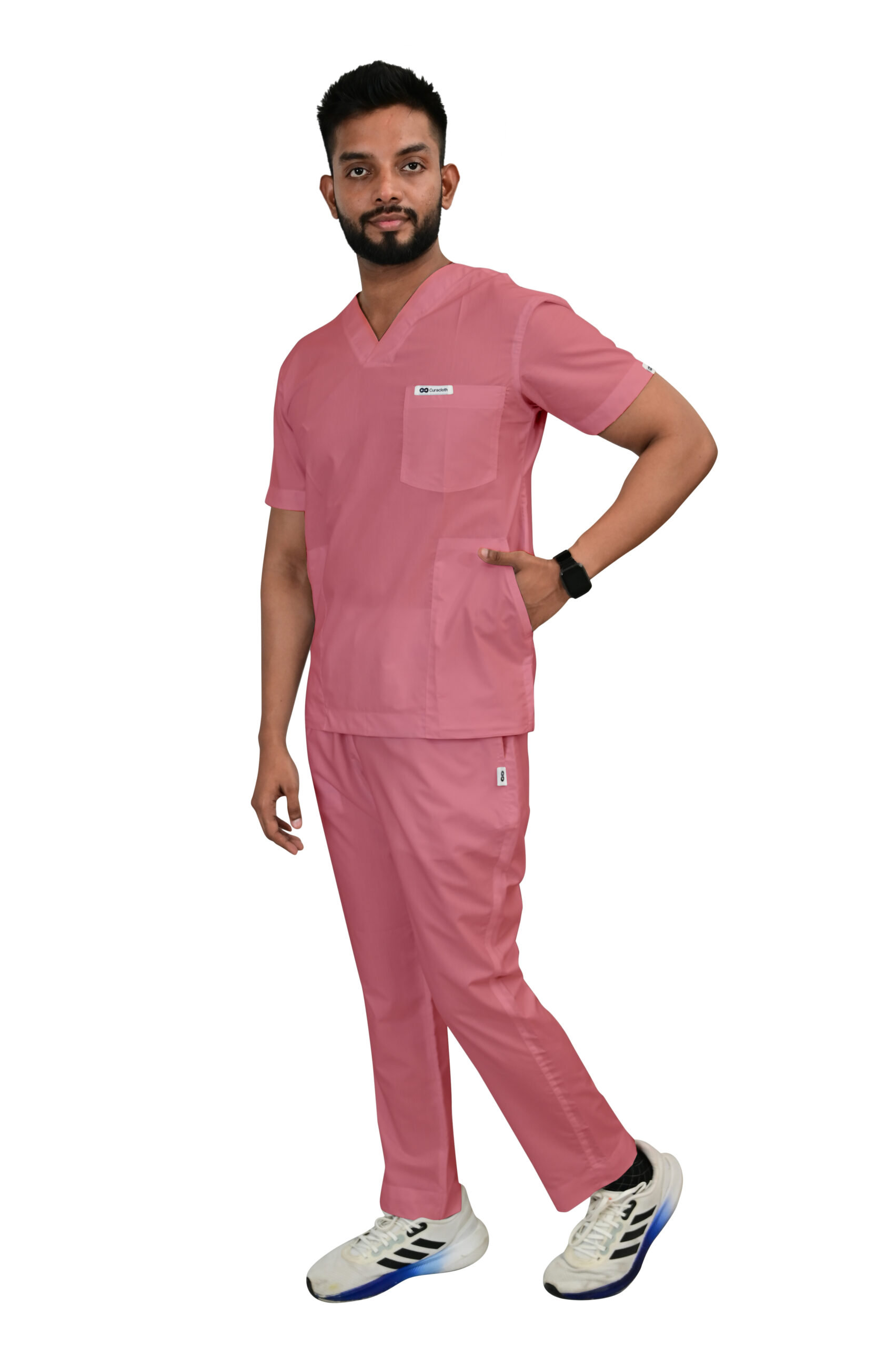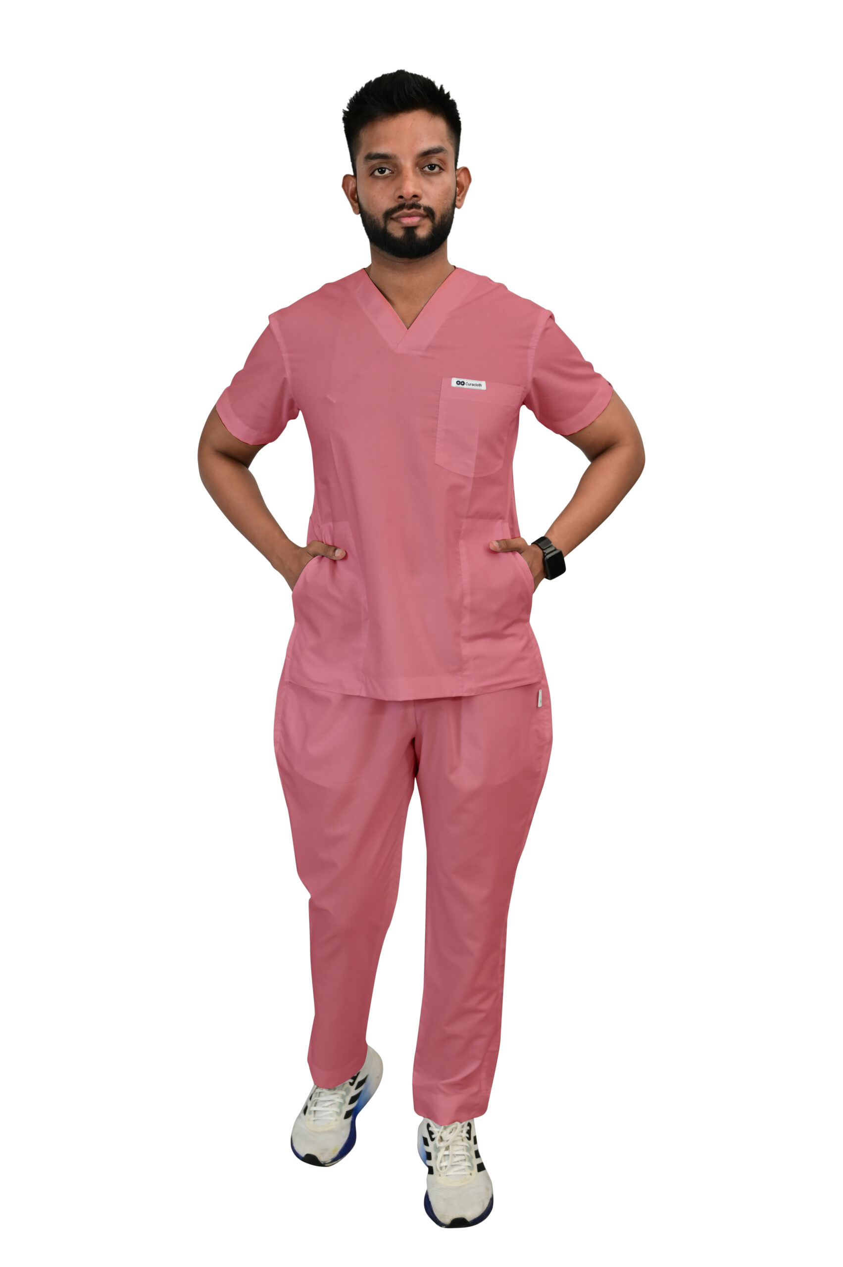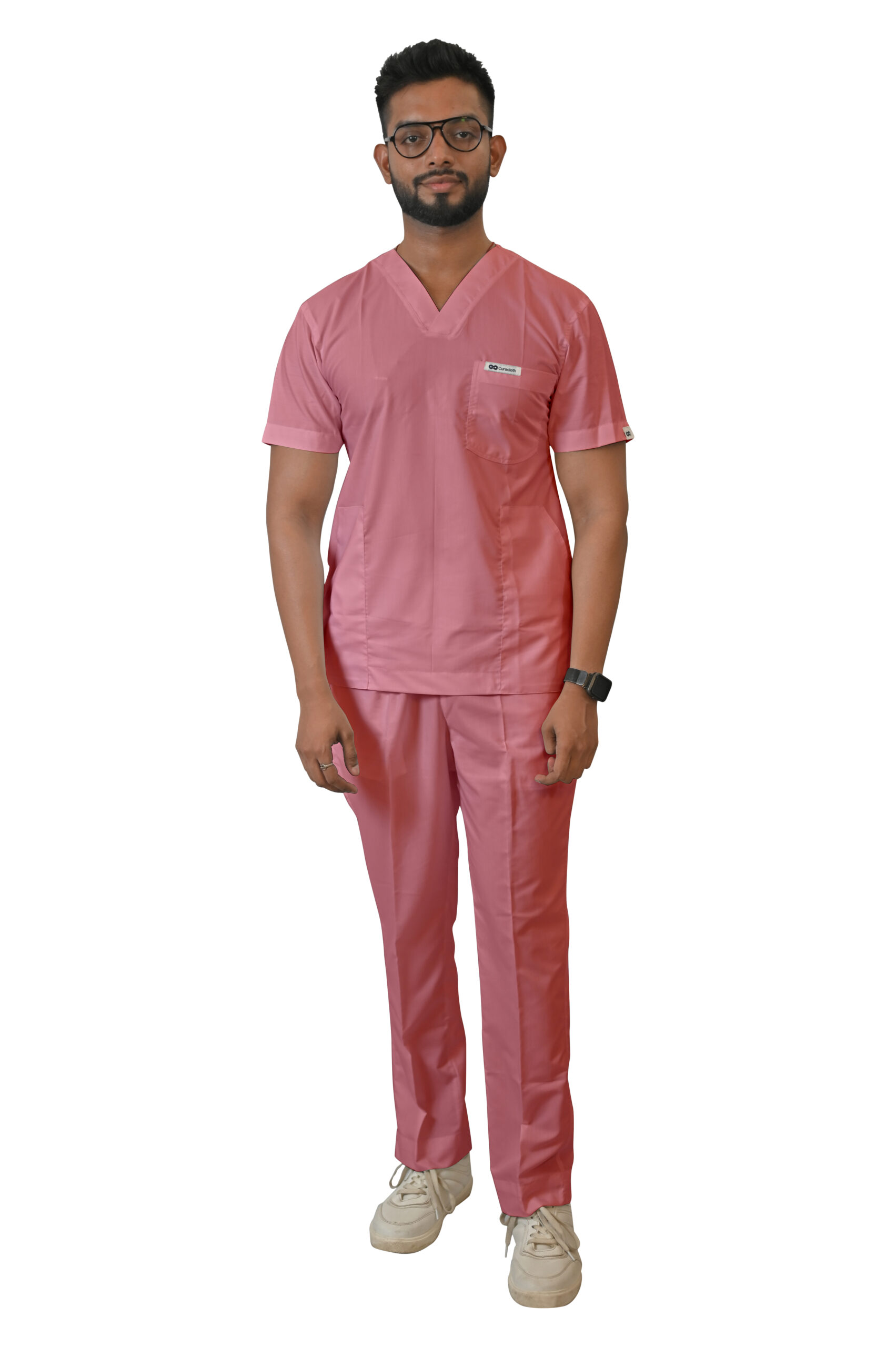 • Classic V-neck design for a clean, timeless professional look.