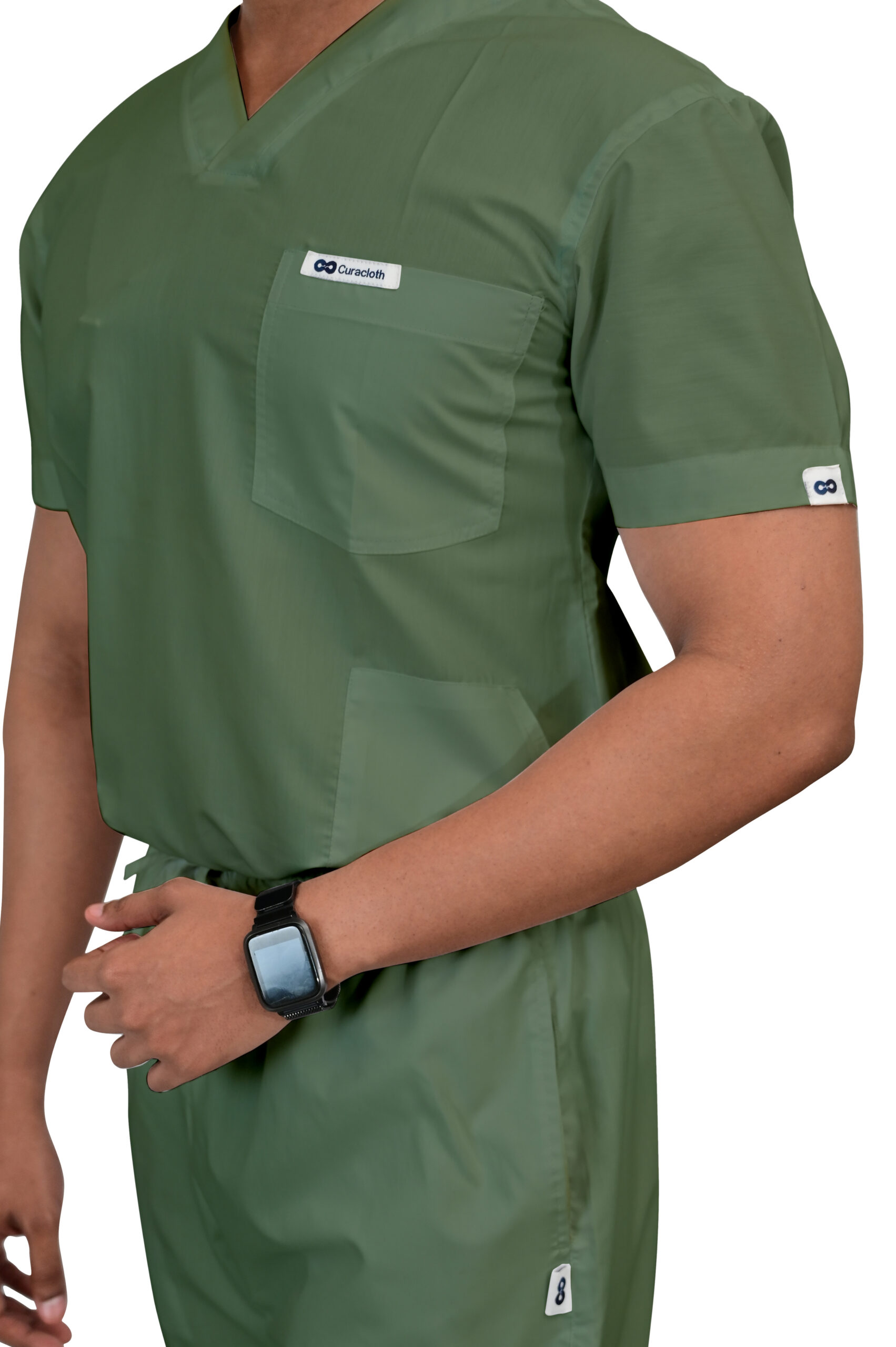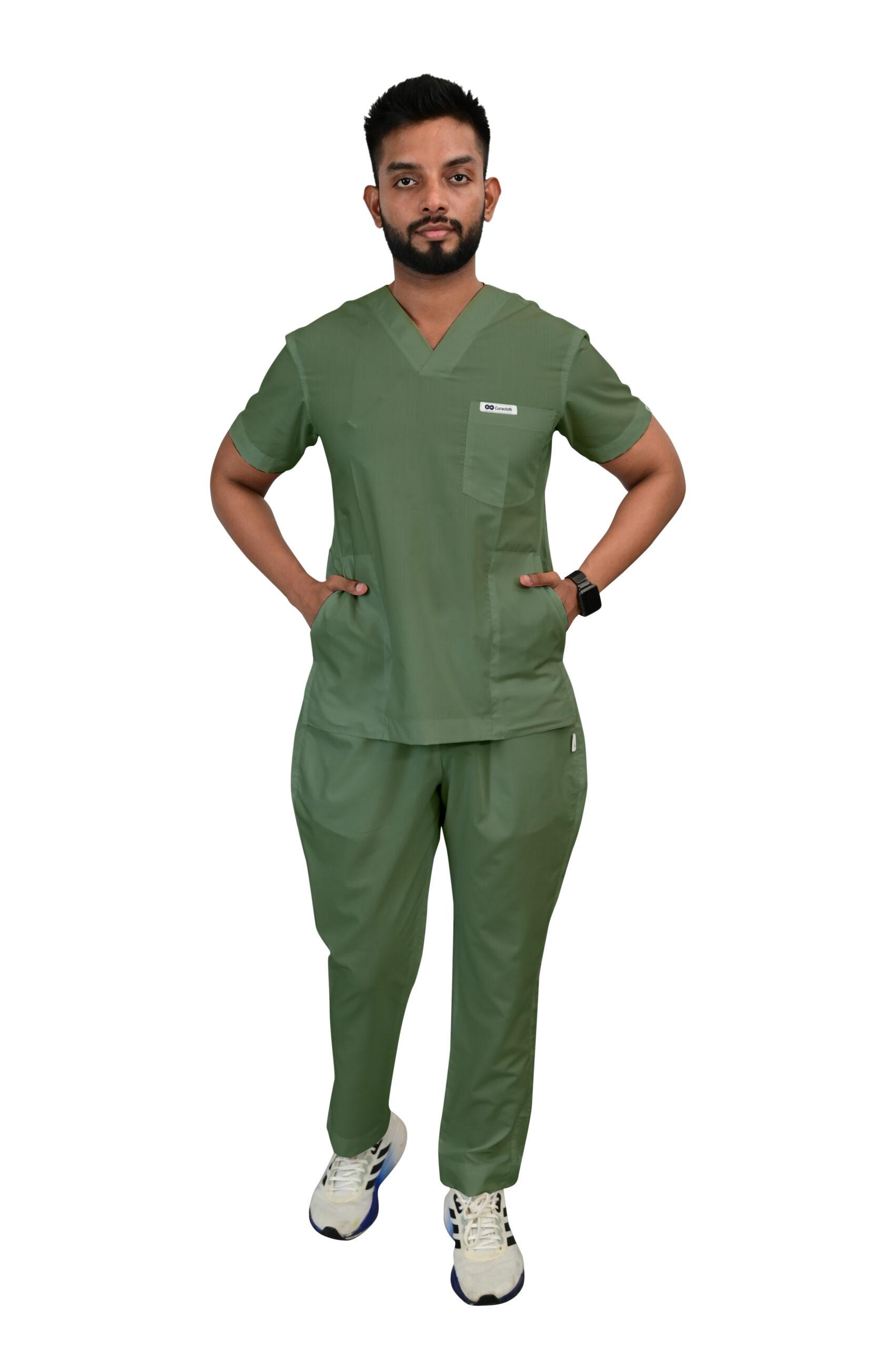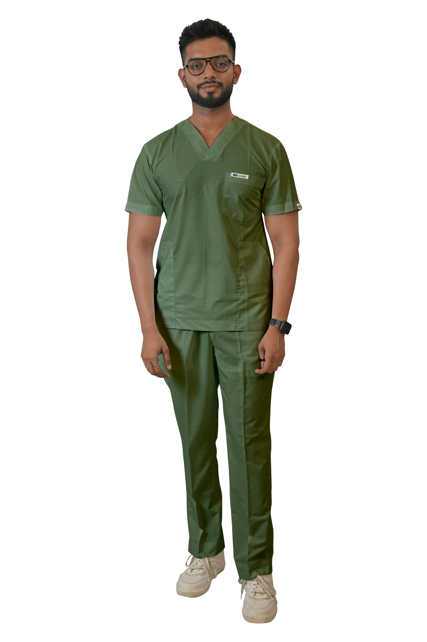 Classic V-neck design for a clean, timeless professional look.