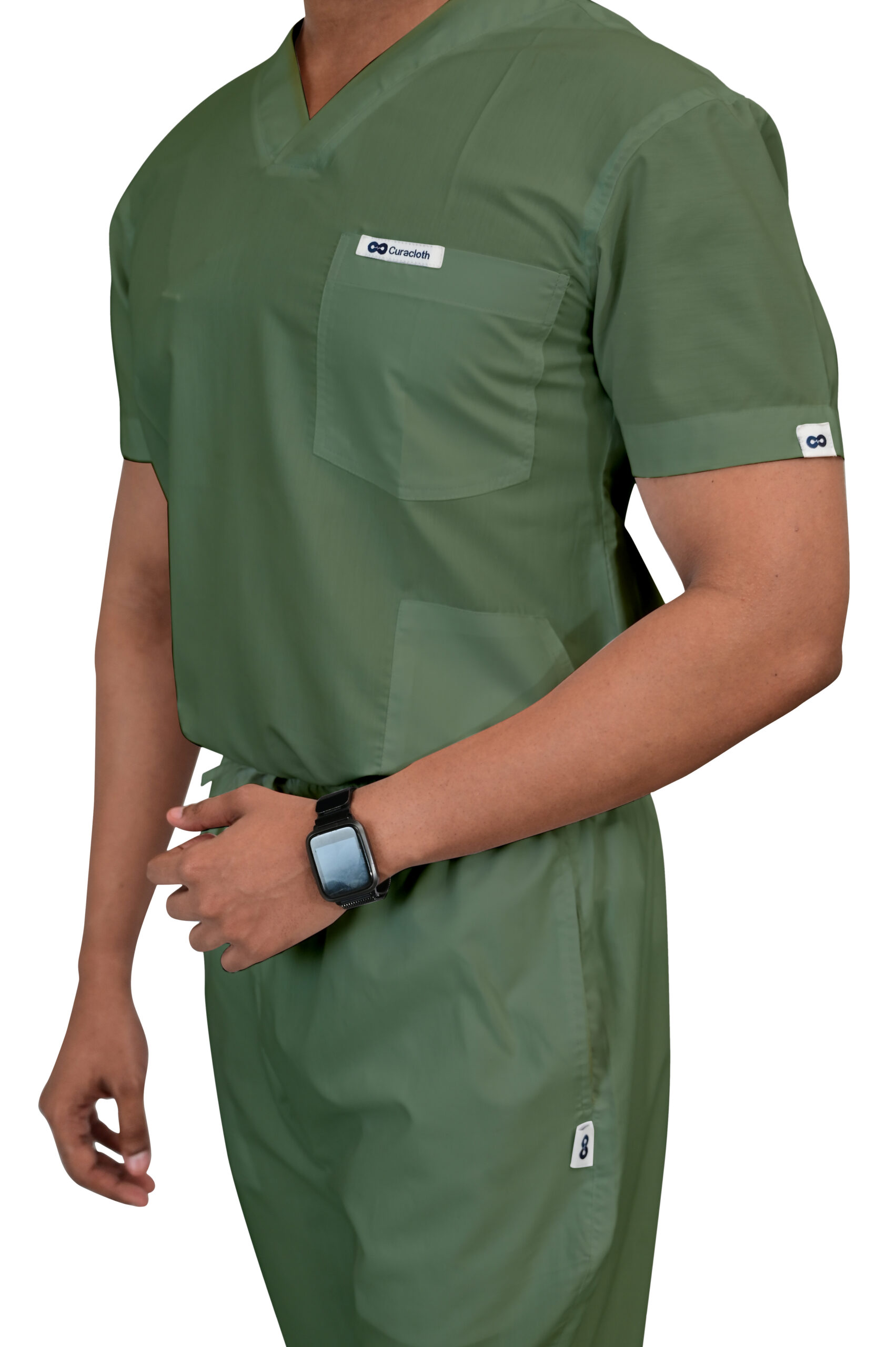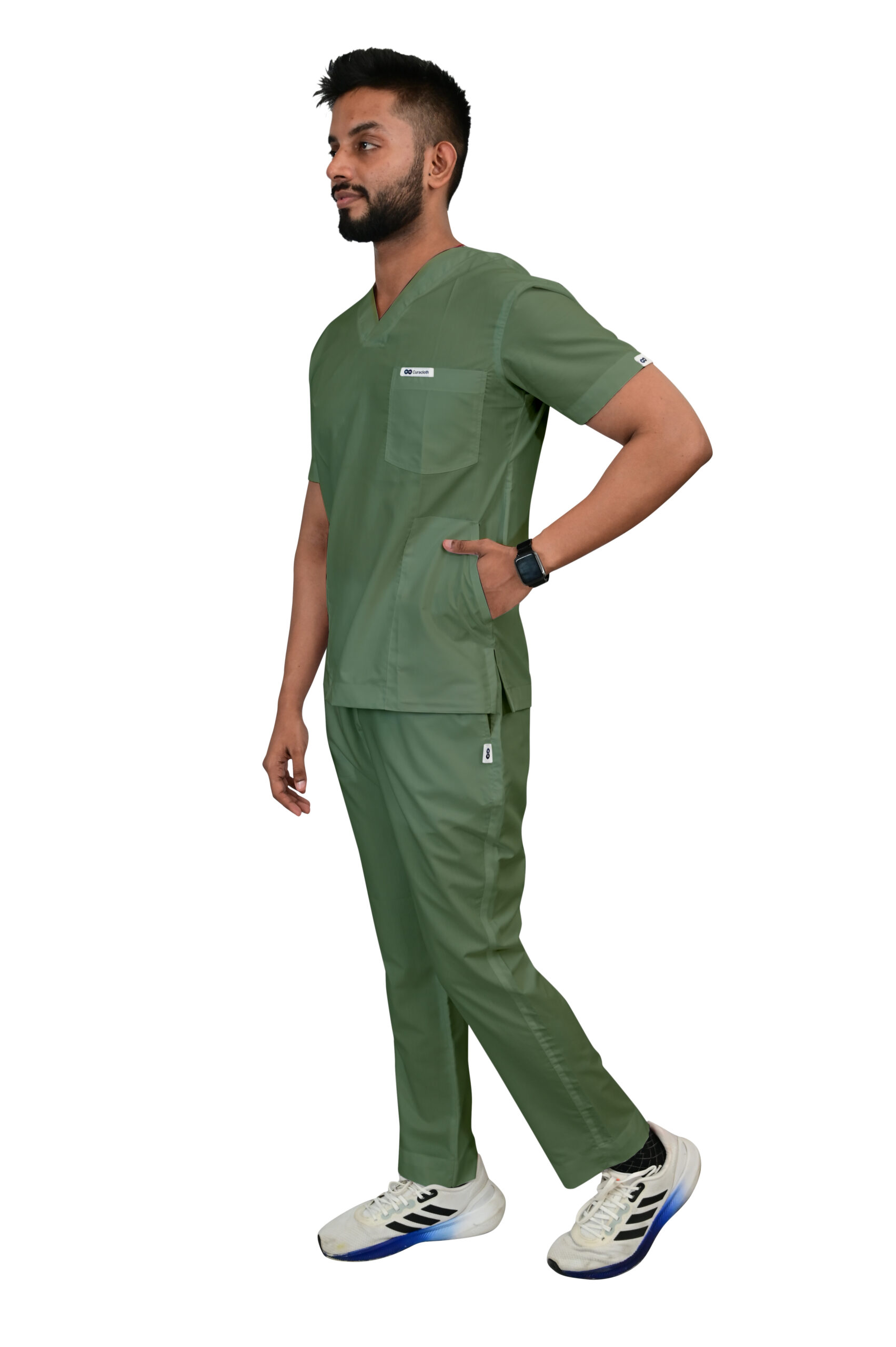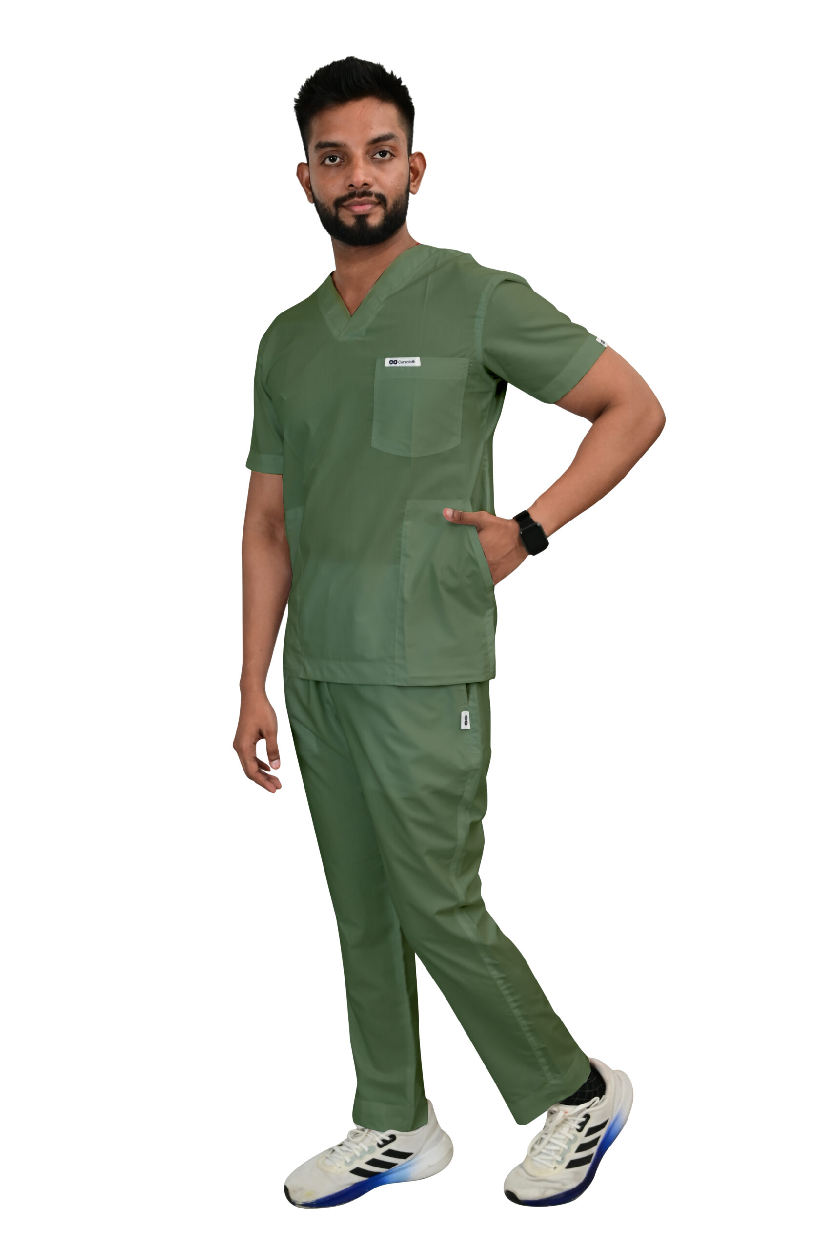 Classic V-neck design for a clean, timeless professional look.